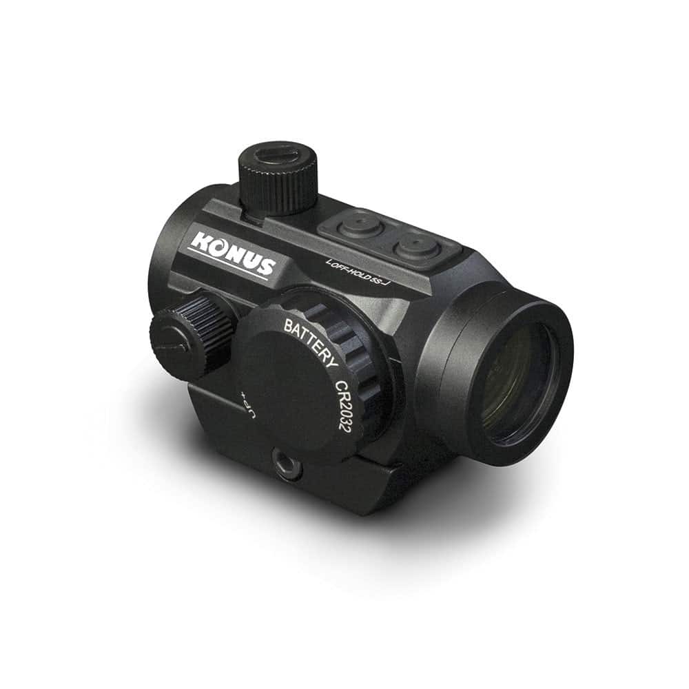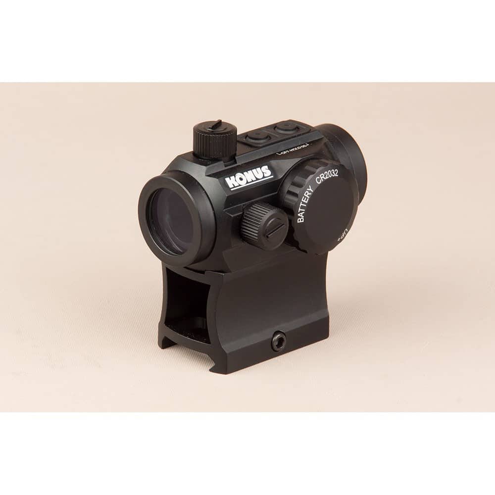 El punto rojo Konus Nuclear 1x22 incorpora un sistema de montaje dual que permite obtener una altura mayor en el carril de su arma.